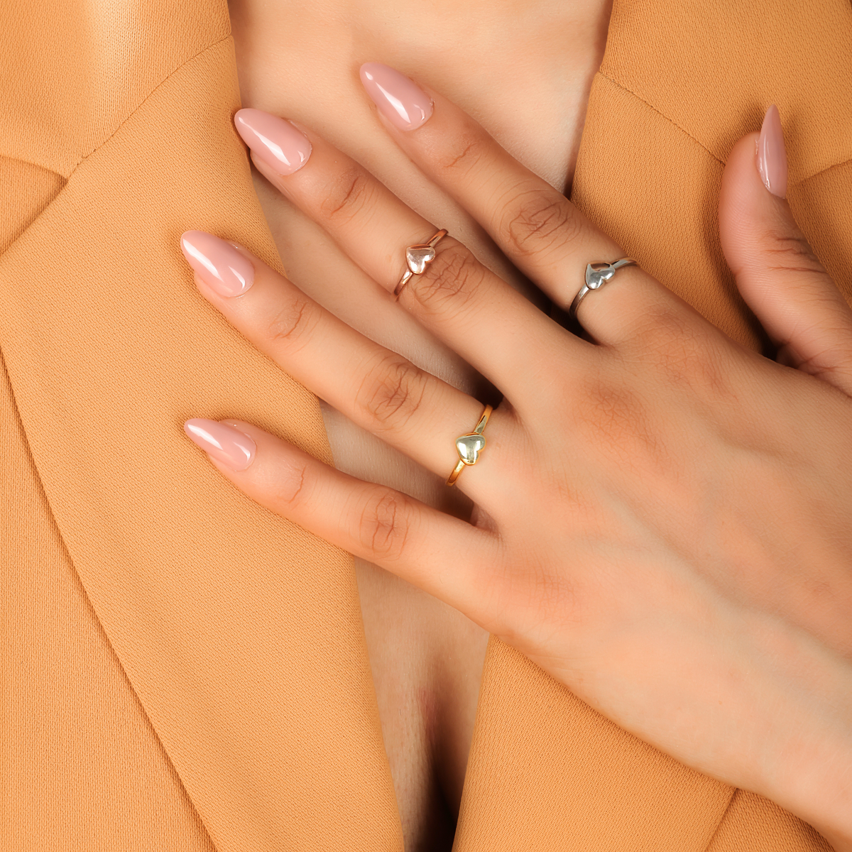 Valentine Heart Shape Tiny Promise Ring – Hallmarked 925 Sterling Silver Yellow Gold Plated | Elegant Party Wear Jewelry