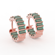 Baguette Emerald C-Hoop Earrings, Hallmarked 925 Sterling Silver