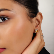 Halo Citrine Solitaire Stud For Anniversary Present, Hallmarked 925 Sterling Silver
