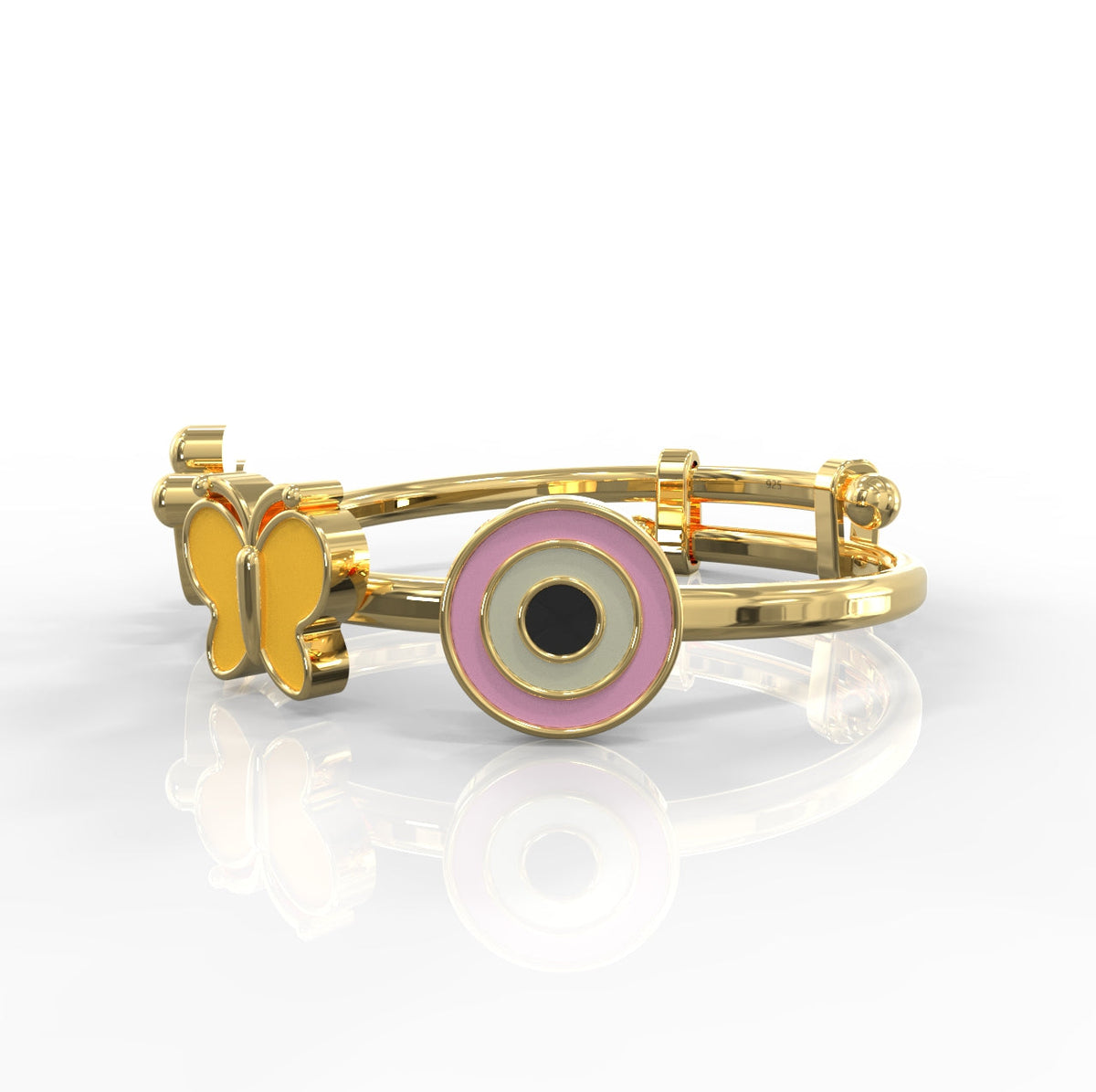This Crown Butterfly Evil Eye Bracelet is a beautiful combination of elegance, charm, and protection, perfect for Bangla kids. Crafted from 925 Sterling Silver with 18KT Gold Plating, this lightweight and adjustable bracelet features a crown, butterfly, and evil eye charm, symbolizing royalty, transformation, and protection from negativity.