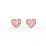 Pave Diamond Heart Shape Stud Earrings- Hallmarked 925 Sterling Silver