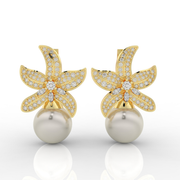 Cocktail Star Fish Pearl Dangle Earrings, Hallmarked 925 Sterling Silver