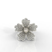 Daisy Pearl Stone Engagement Ring, Hallmarked 925 Sterling Silver White Gold