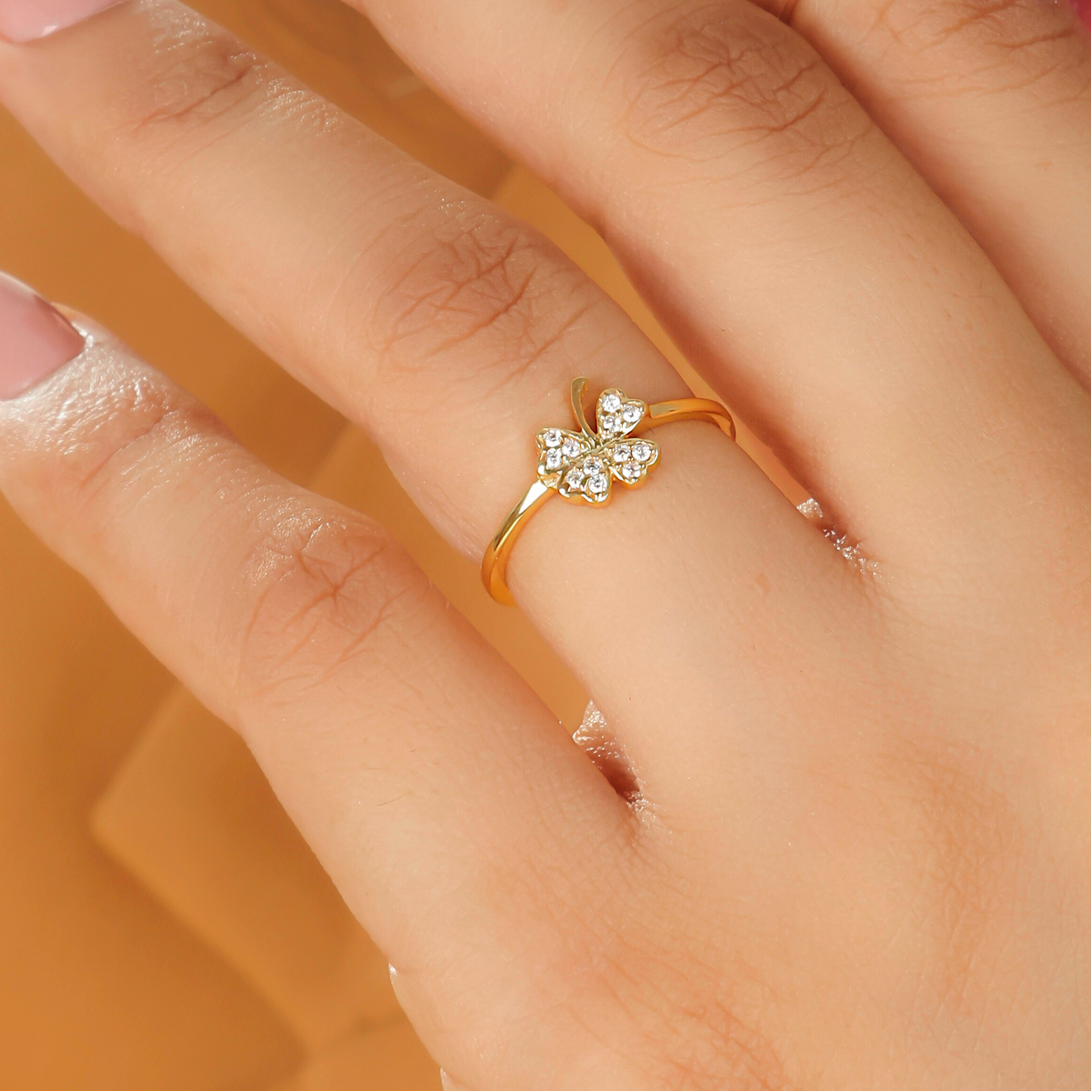 Palm Leaf Shape Dainty Stacking Ring – Hallmarked 925 Sterling Silver Yellow Gold Plated | Elegant & Versatile Jewelry