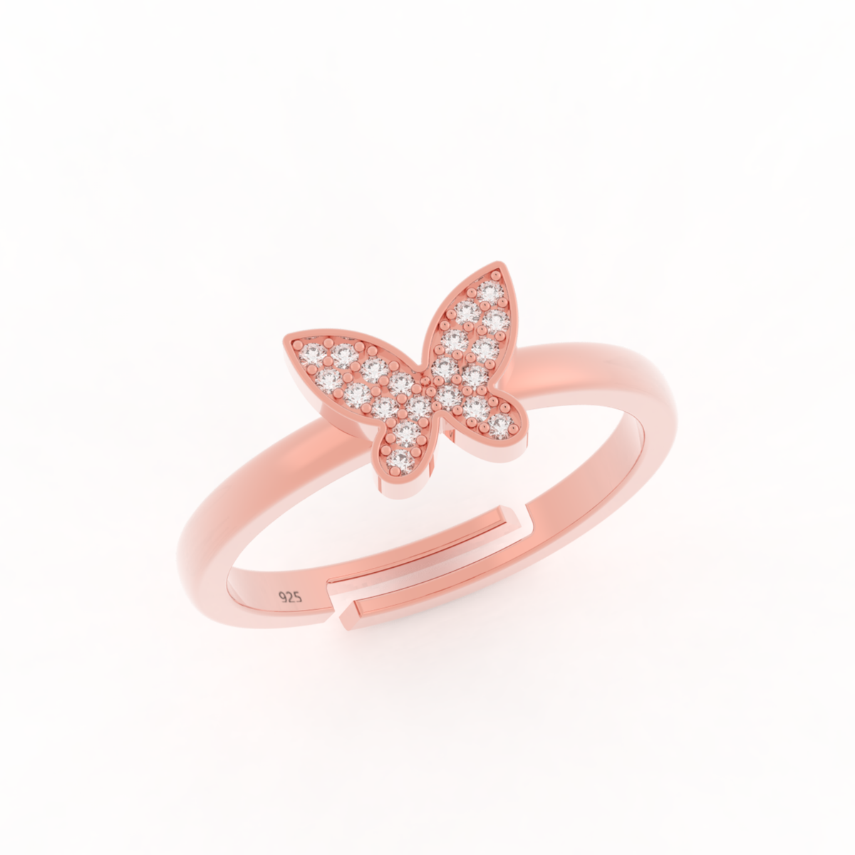 Shimmery Butterfly Cute Ring- Hallmarked 925 Sterling Silver Rose Gold