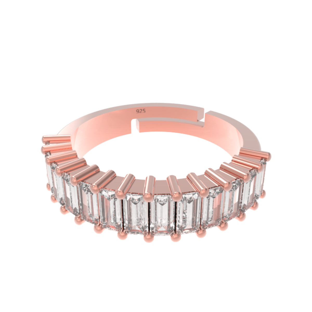 Baguette Cut Half Eternity Band Rose Gold Plated, Hallmarked 925 Sterling Silver