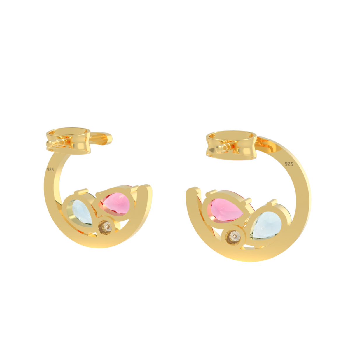 Scattered Multi Gemstone Half Circle Stud, Hallmarked 925 Sterling Silver