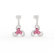 Vintage Ruby Flower Dangle Earrings, Hallmarked 925 Sterling Silver