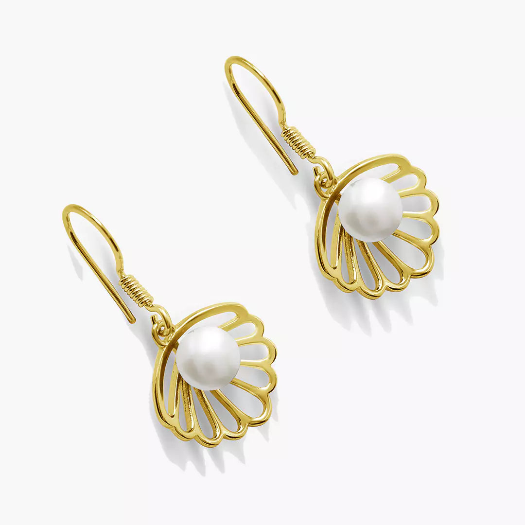 Delicate, dreamy and shaped like seashells, these dangling earrings are adorned with luminous pearls at the center, that adds a...