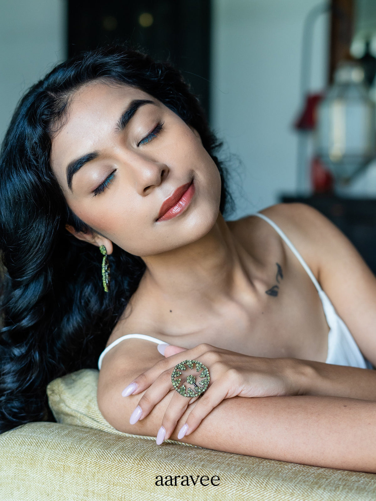 Corolla Two-Finger Ring - Green / 5