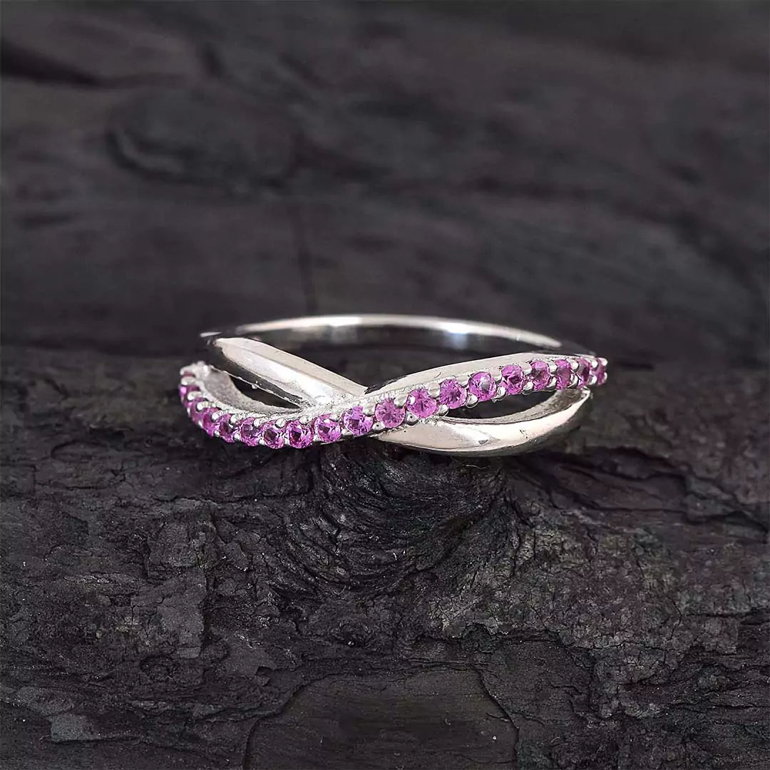 Infinity Ring- Colourpop - Sterling silver / Pink Sapphire Crystal / 5