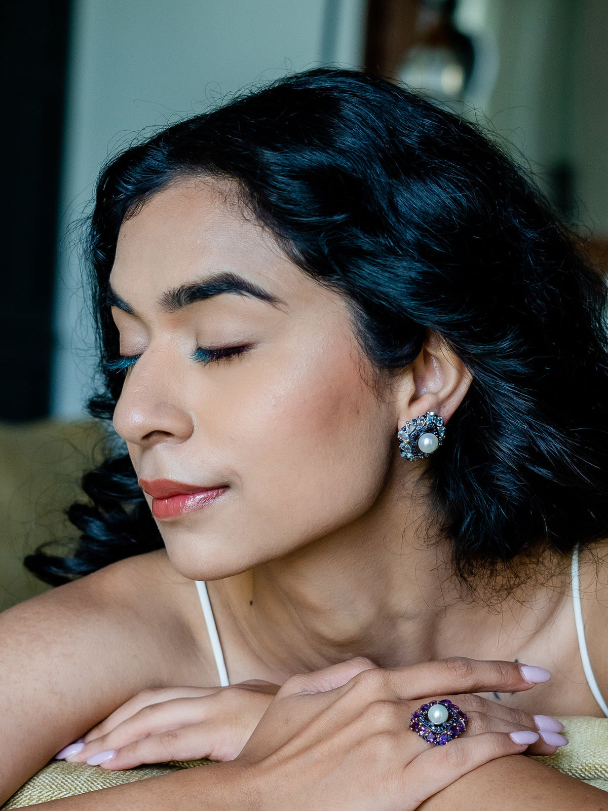 Pastels are vibrant and lighten up the mood. The Tetra studs use gemstones such as amethyst (purple) and blue topaz...