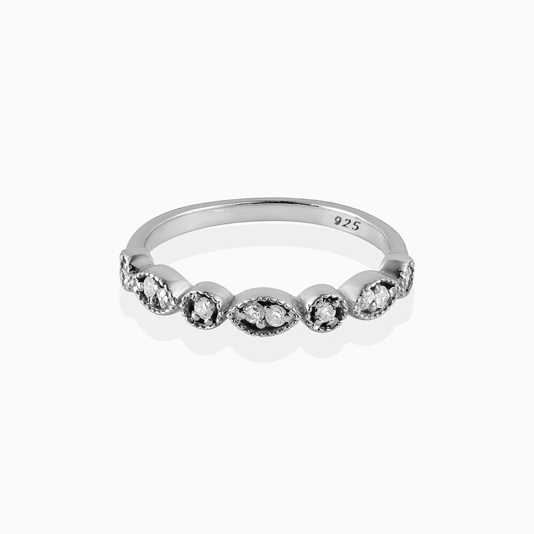 The Vintage Minimal Ring features a mesmerizing design where alternating marquise and round shapes adorn half of the band, each...